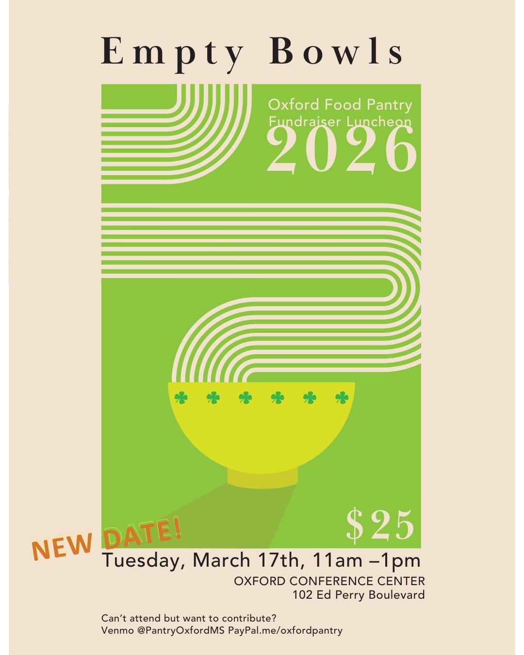 If you aren't able to attend, you can still contribute by Venmo (@PantryOxfordMS) or PayPal (paypal.me/oxfordpantry).